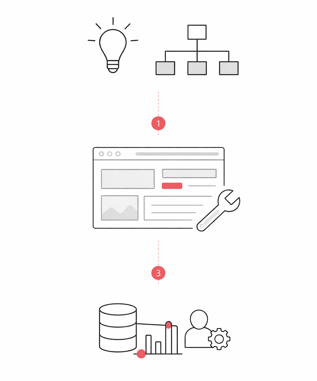 Trabajamos con una secuencia clara porque los sistemas no responden bien al caos. Antes de construir, entendemos qué se decide, qué se prioriza y qué no conviene tocar todavía.