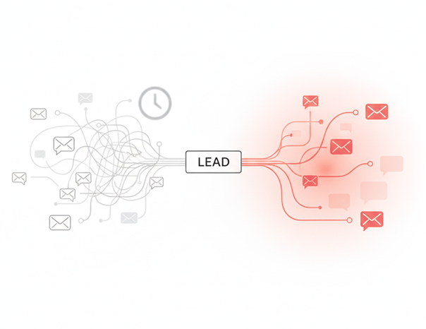Diseñamos emails, WhatsApp o flujos híbridos que preparan al lead antes de hablar contigo, aumentando cierres y reduciendo tiempo improductivo.