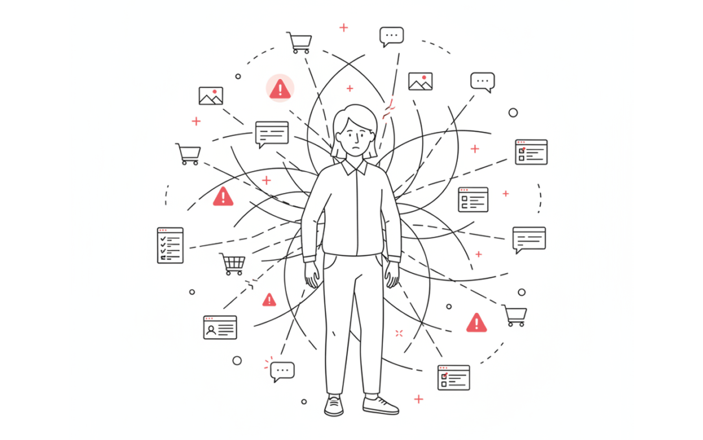 La intención existe, pero el proceso confunde: demasiados pasos, mensajes mal ubicados o decisiones forzadas. El problema no es el producto, sino el recorrido.